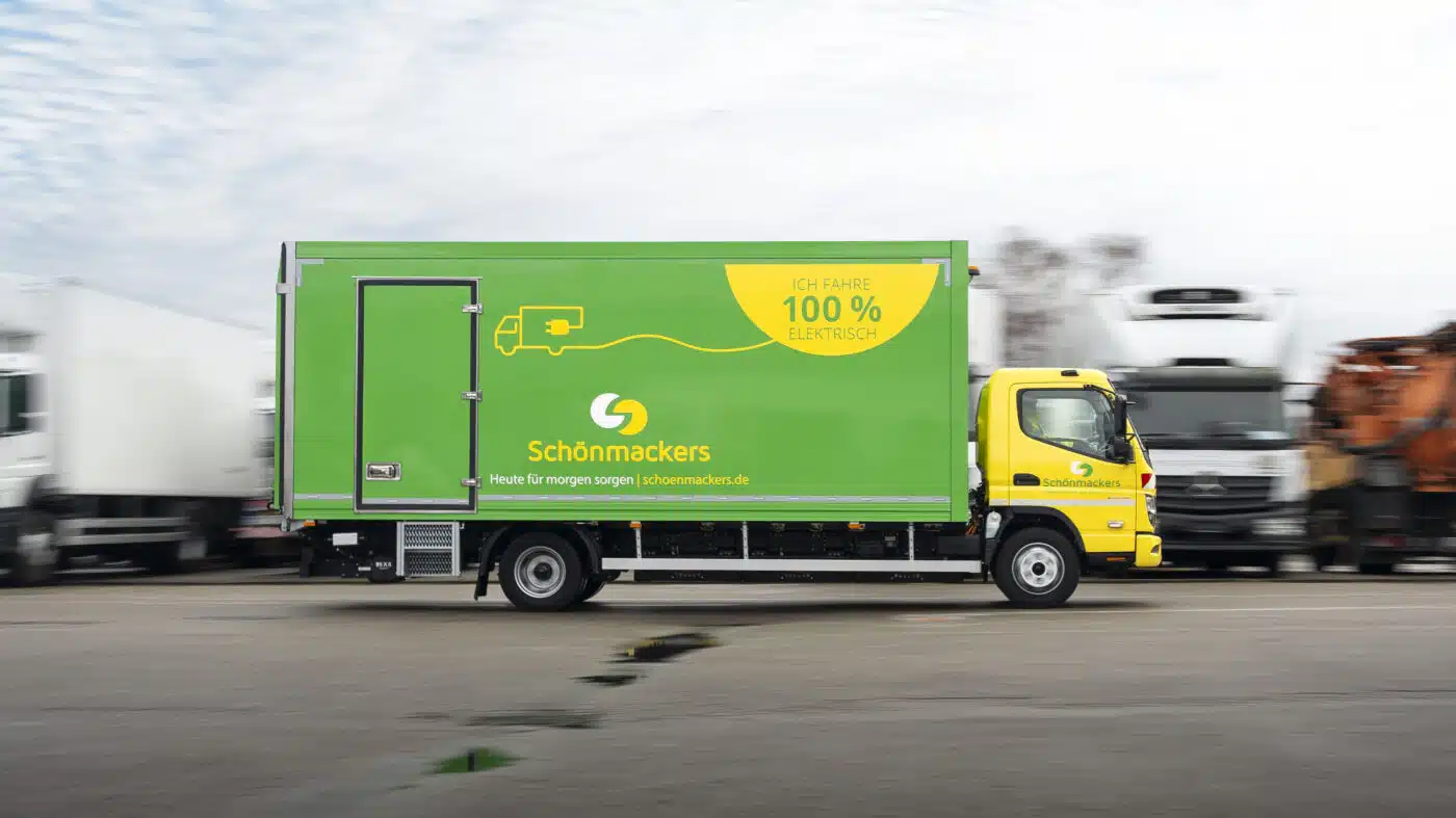 Jako odpovědný provoz oběhového hospodářství se společnost Schönmackers zavazuje ke svému sloganu a plánuje v rámci svých možností trvale a bezemisně vybavit svůj vozový park, který v současné době zahrnuje přibližně 650 jednotek. Nový FUSO eCanter dělá začátek. Pro firmu Schönmackers přivítali čistě elektricky poháněného nováčka Michaela Lohse, Kurt Reinartze a Petera Lövenicha ve funkci technického ředitele pro region Porýní a vedoucího zásahu a dílny v pobočce Kerpen, kde bude eCanter v budoucnu používán.
